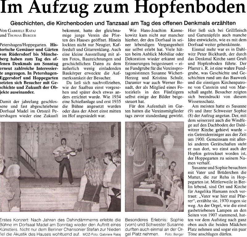 Zeitungsartikel der MOZ vom 12.09.06: Im Aufzug zum Hopfenboden