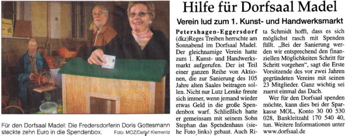 Zeitungsartikel der MOZ vom 17.03.08: Hilfe für Dorfsaal